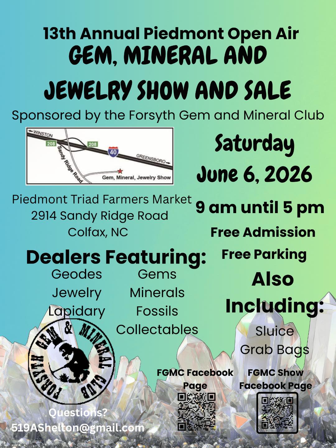 Piedmont Open Air Gem, Mineral, and Jewelry Show Come shop for gems, minerals, and jewelry at the 13th annual Piedmont Open Air show.
